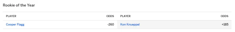 玩法-ESPN最佳新秀赔率:弗拉格-260居首,克尼普尔+185次席
